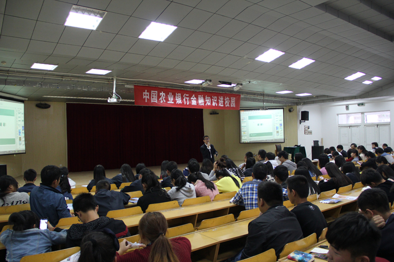 为提高我院青年大学生互联网金融安全知识、增强金融安全防范能力和提高金融素养。10月28日,学院团委联合中国农业银行池州分行在院大学生活动中心举办了“e时代赢精彩—中国农业银行金融知识进校园”专题讲座。池州市农行信用卡中心电子银行部总经理查道宏先生、池州市秋江支行行长张强先生等领导出席活动。活动由学院团委副书记吴雯雯主持,池州市电子银行业务专家程学茂先生主讲,320余名池职学生参加了活动。